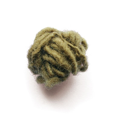 Ya lo he comentado antes: el proceso creativo es algo misterioso, a veces, y aquella vez la respuesta vino sola. Mi hija mayor, muy pequeña entonces, llegó de su jardín infantil con un pequeño trozo de lana verde oliva y estuvo jugando toda la tarde a hacer un ovillito diminuto.